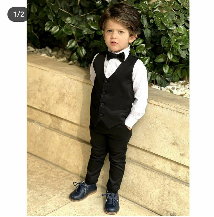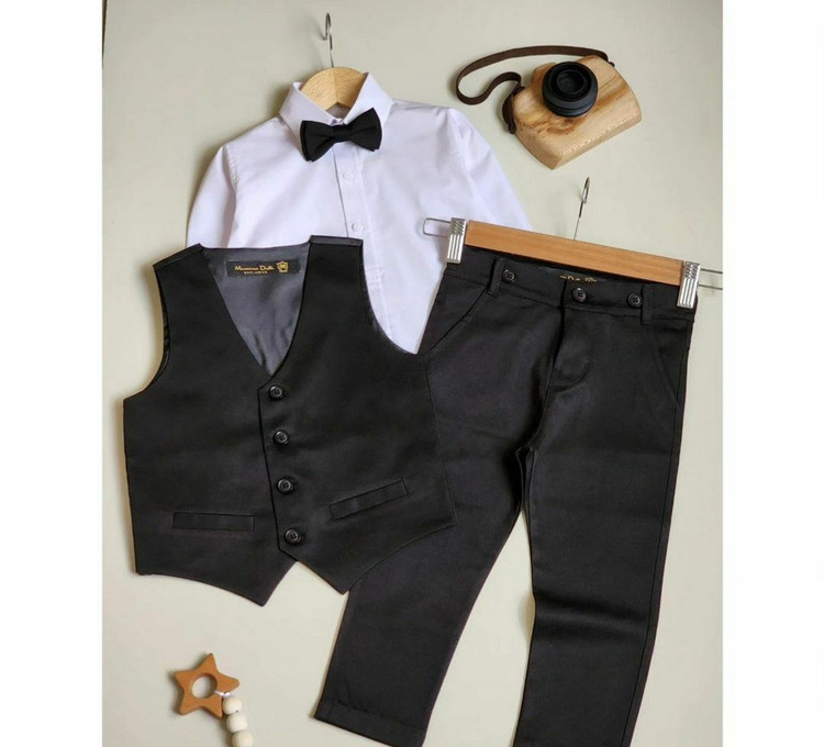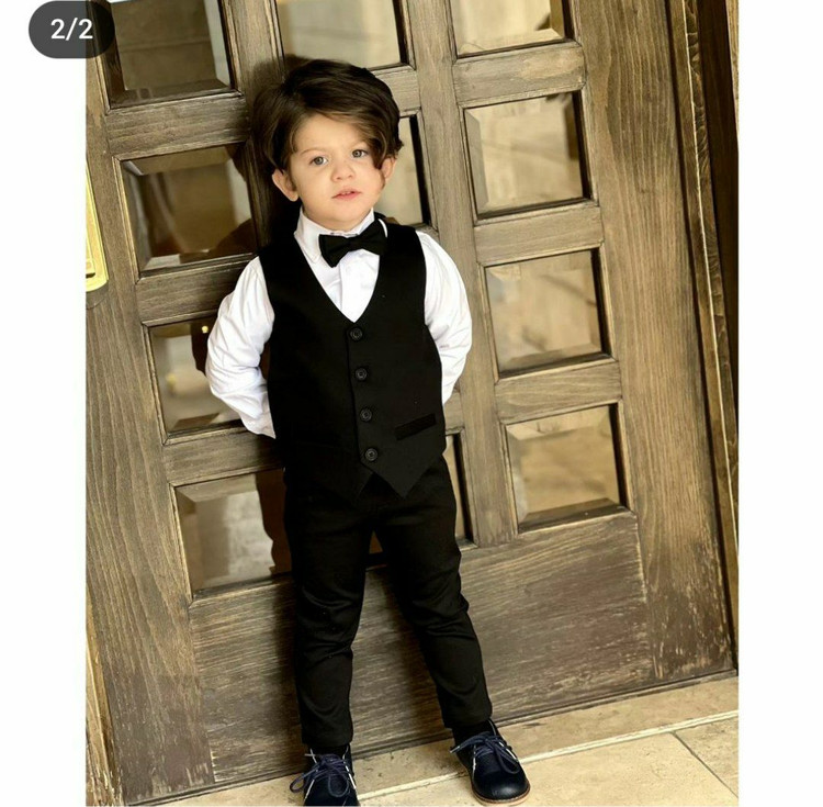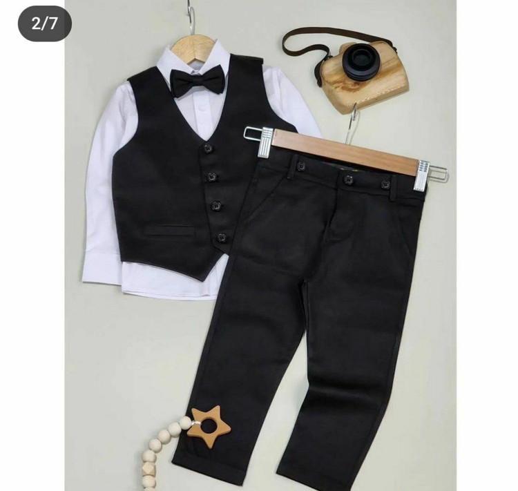 _جدید _عیدانه ست ۴تکه ژیله دار (پیراهن ، شلوار ، ژیله ، پاپیون ) جنس پیراهن : پوپلین ، فوقالعاده باکیفیت بدونه آبرفت جنس شلوار و ژیله و پاپیون : کتان (ضخیم و باکیفیت) کمر کش رگلاژ دارد سایزبندی ۲/۳/۴/۵/۶/۷ (مناسب برای ۱سال تا ۷ سال) اندازه های پیراهن و شلوار