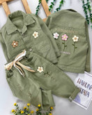 کااکشن عیدانه کت شلوار مهگل جنس کتان مناسب 2سال تا8سالبستگی به جثه بچه) ( گروه سنی . 50/55/60/65/70/75 رنگ بندی کرم تیره سبز مشکی سایز بندی