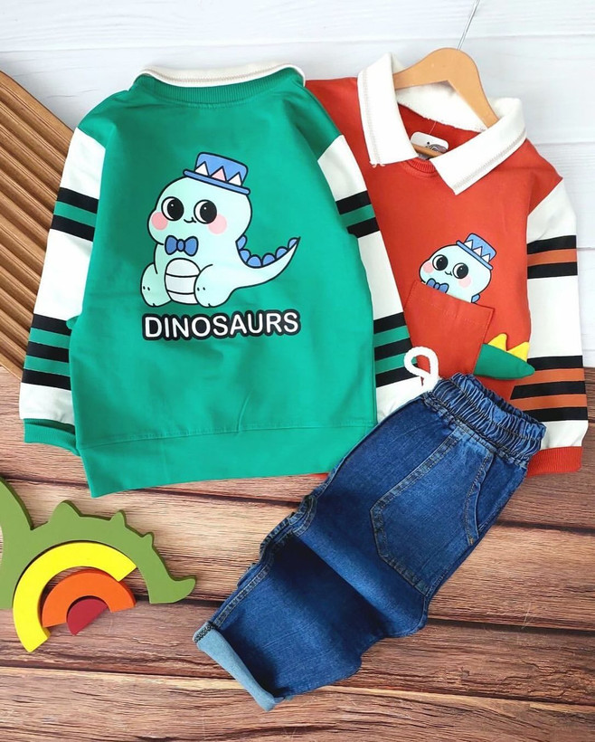 متاسفانه این کالا در حال حاضر موجود نیست. میتوانید از طریق لیست بالای صفحه، از محصولات مشابه این کالا دیدن نمایید.کالکشن عیدانه بلوز شلوار اسپرت طرح دایناسور اسپرت خواهر برادری (مناسب دختر وپسر) جنس بلوز: دورس پنبه لاکرادار (کشی) جنس شلوار: لی رنگبندی : سبز، کرم،اجری، قهوهای سایزبندی: 55,50,45,40