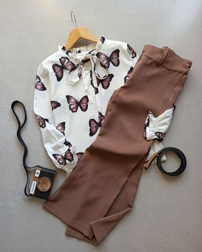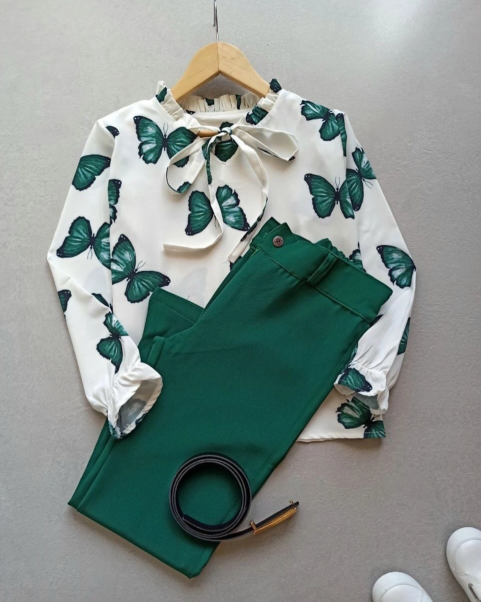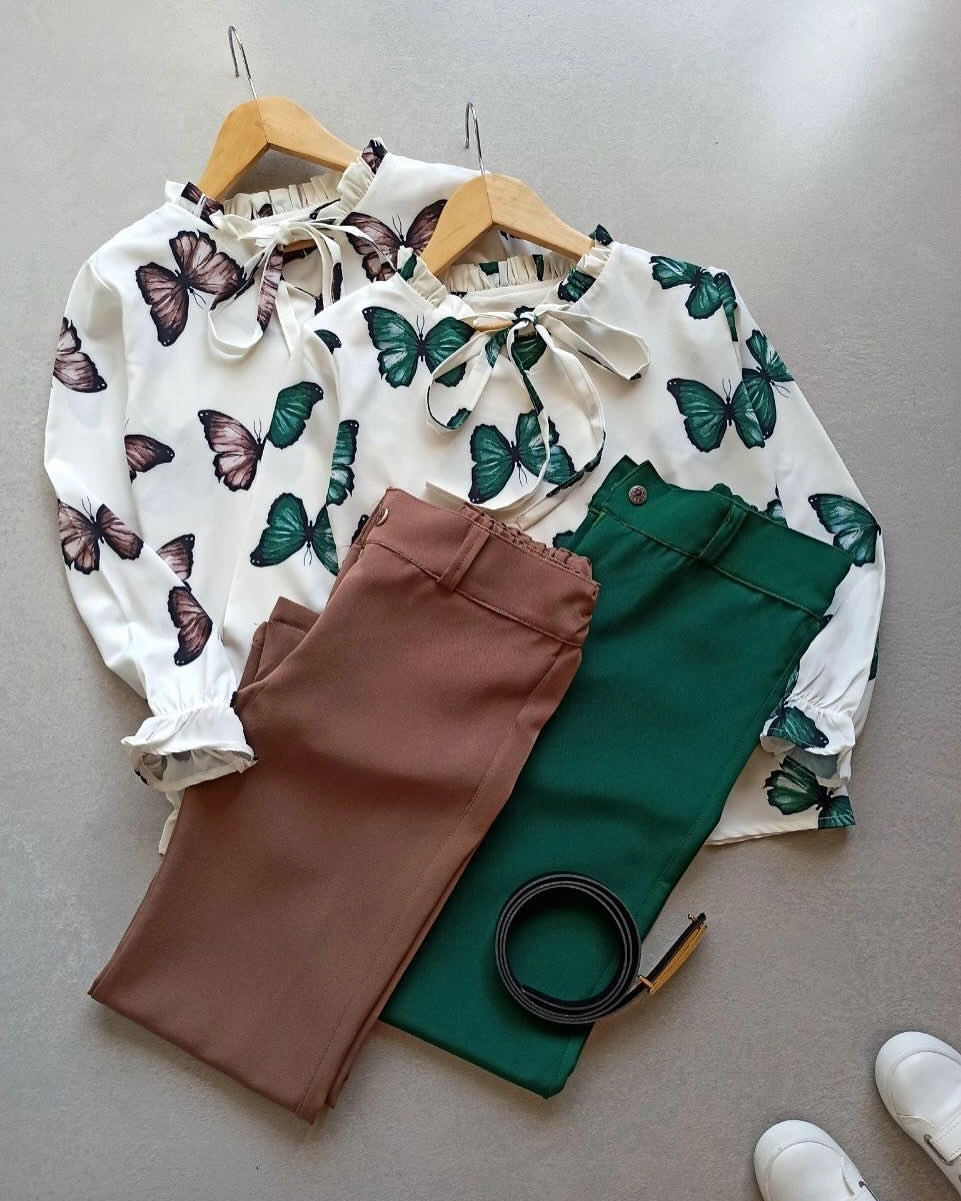 شومیز شلوار پروانه مجلسی همراه کمربند سایزی ۵۵ ۶۰ ۶۵ ۷۰ ت جنس شومیز بوگاتی شلوار مازراتی دورنگ عالییییی