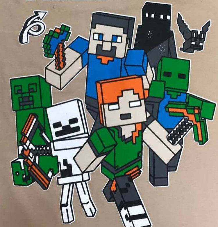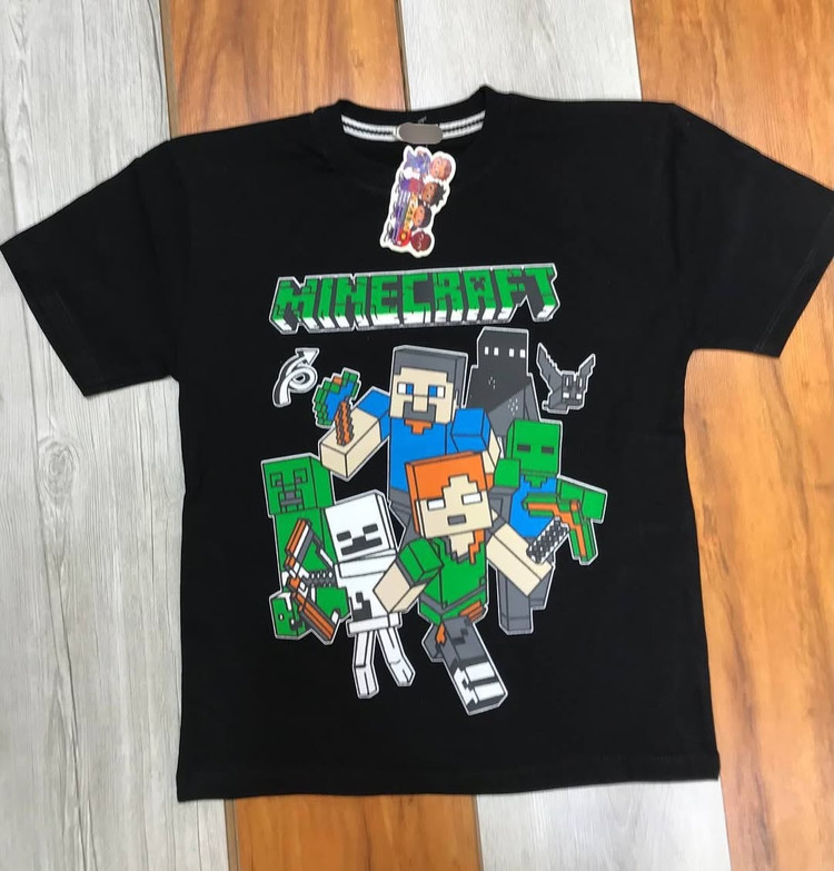 تیشرت پسرانه تیشرت تک ماینکرافت جنس محصول: پنبه سوپر چاپ پلاستیزول درحه یک رنگ بندی: مشکی و کرم موکا سایزبندی : 55+60+65+70
