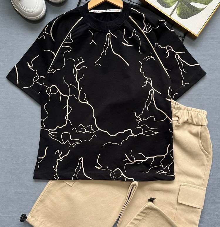 ست تیشرت و شلوارک بیرونی تیشرت جنس پنبه لاکرادار شلوارک کتان دورنگ سایز. ۵۰/۵۵/۶۰/۶۵/۷۰