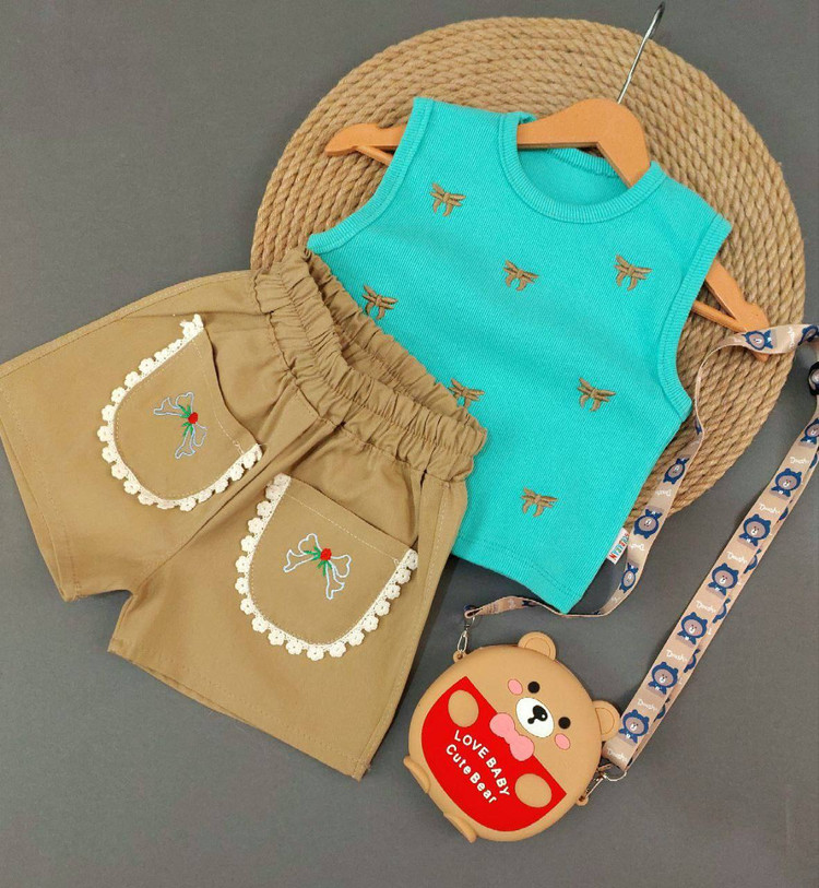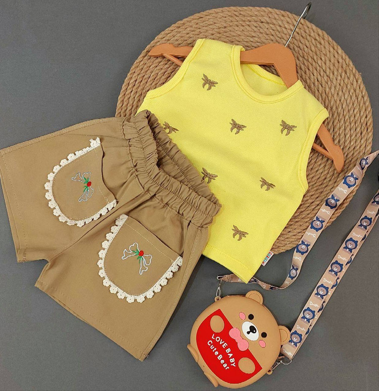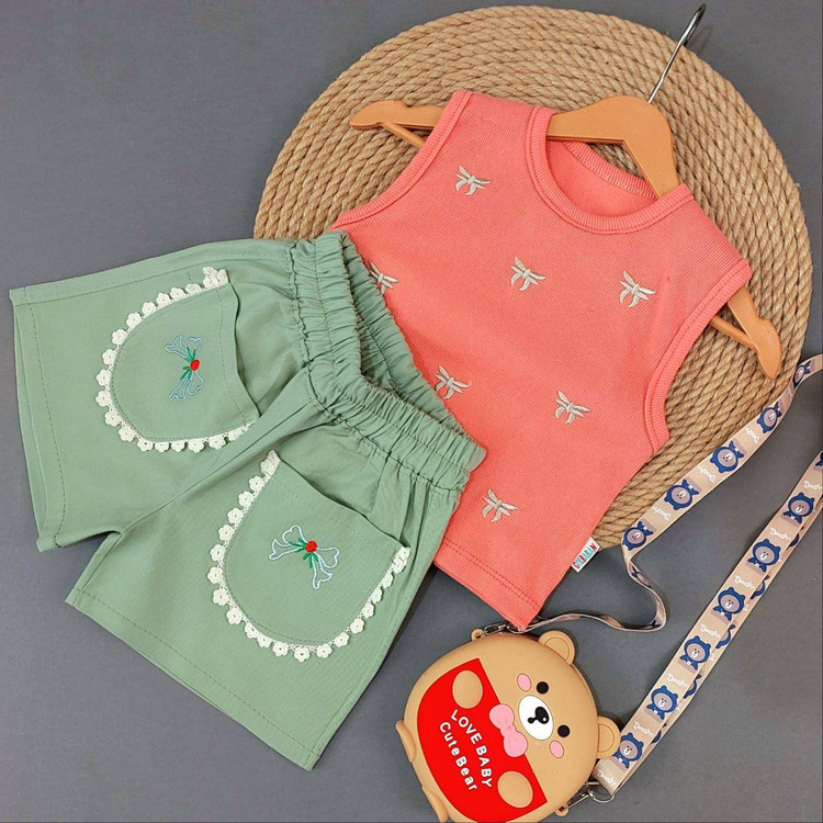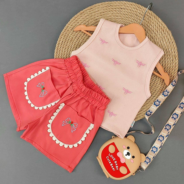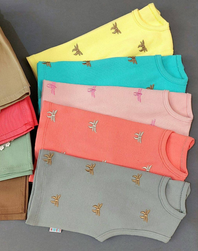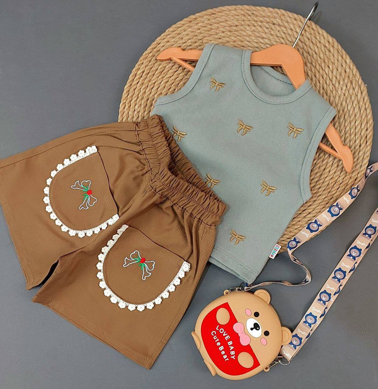 ست شیک دخترانه جنس تاپ کش فانریپ شلوارک کتان پنبه رنگ بندی :۵ رنگ سایز :۳۵.۴۰.۴۵.۵۰ ت