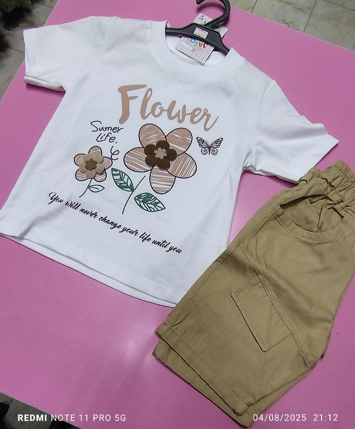 تیشرت شلوارک کتان دخترانه طرح گل