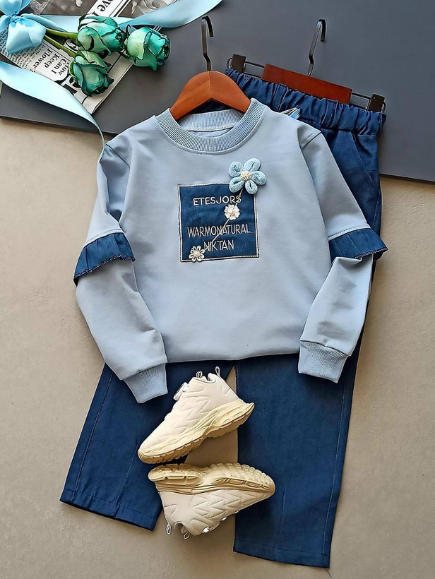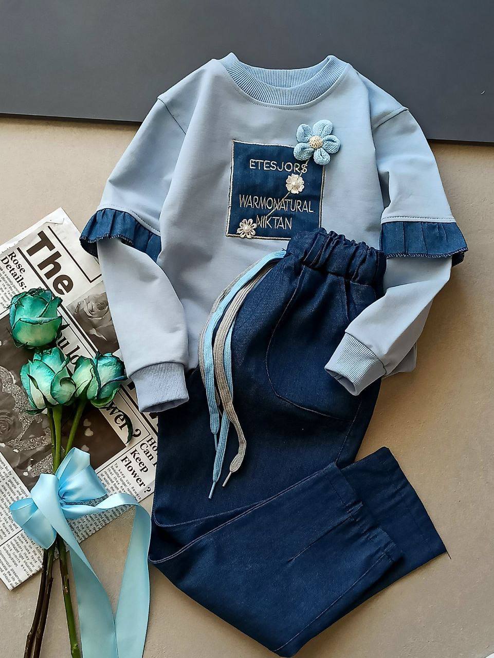 شیک بپوشید ست بیرونی با شلوار جین جنس بلوز دورس دو نخ لاکرا دار گرم بالا با خرج کار جین و گلدوزی زیبا و شلوار جین 330 گرم اعلااا بدون کشسانی سایزبندی 45 تا 60 مناسب 4 تا 10سال بستگی به جثه