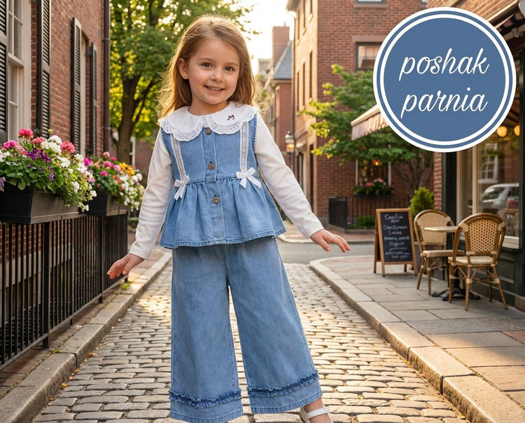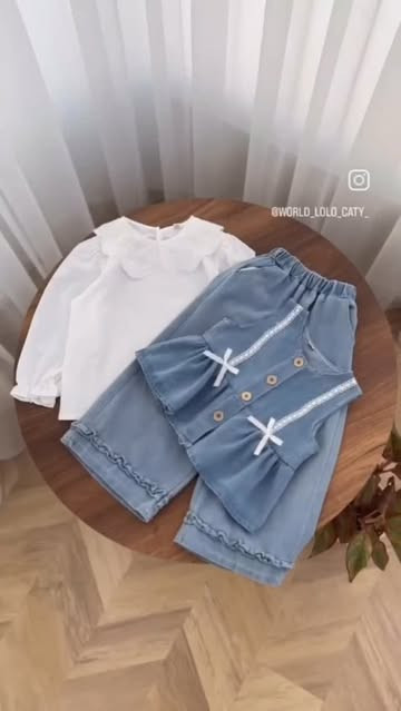 جنس جلیقه و شلوار لی سنگشور شده، جنس بلوز پنبه ت. سایزبندی ۲ تا ۸ سال.