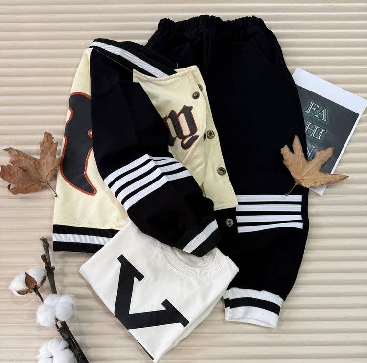 ست سه تیکه اسپرت سوییشرت + شلوار + تیشرت دخترانه و پسرانه لش استایل