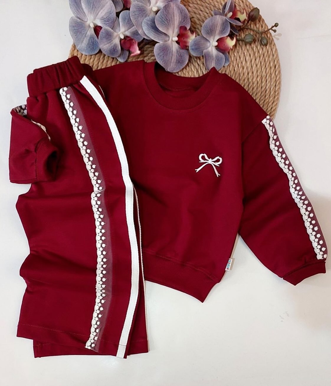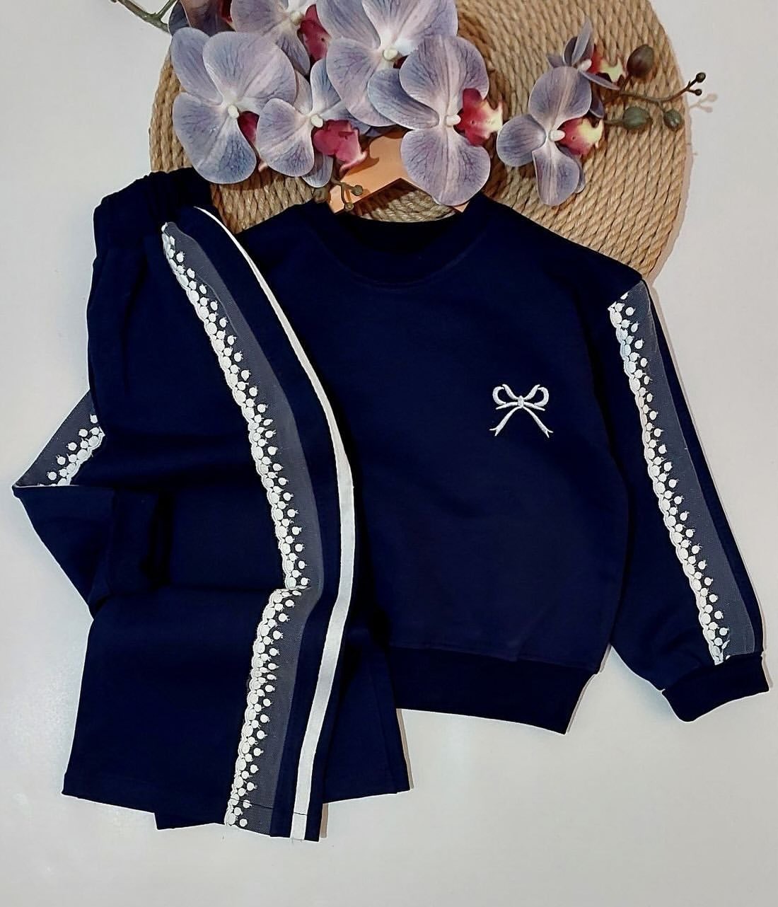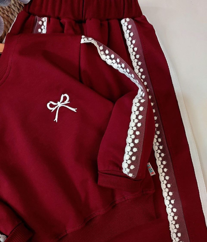 ست دخترانه پاپیون بغل نوار دار گیپوری