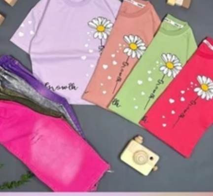 تیشرت شلوارک جین واید گل