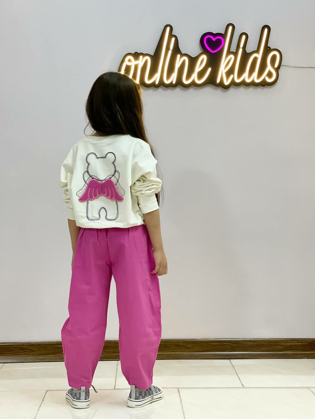 _جدید _عیدانه ست کراپ و شلوار دخترانه ست عیدانه طرح خرس مهربون جنس بلوز دورس جنس شلوار کتان پنبه شست شده سایزبندی ۱۱ سال سه رنگ عالیییییی همراه با گردنبند دوخت جنس تضمینی تنخور فوق العاده کراپ _جدید _عیدانه #کودک#پوشاک